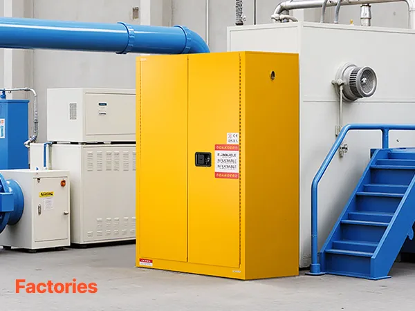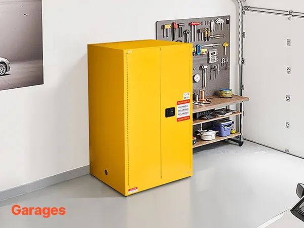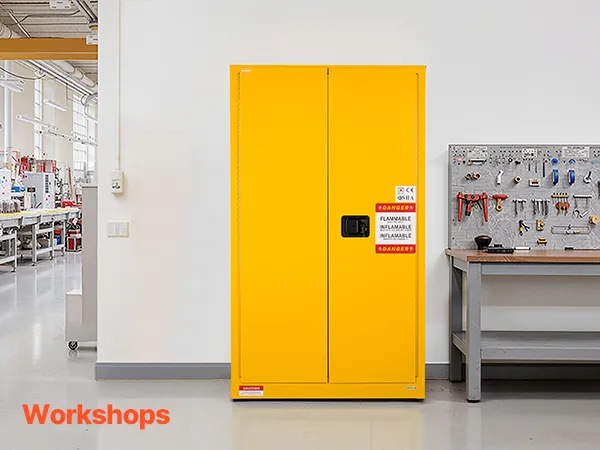 Vielseitig für verschiedene Umgebungen: Dieser Lagerschrank für brennbare Flüssigkeiten vereint Sicherheit und Komfort und ist daher ideal für Werkstätten, Produktionsanlagen, Garagen und andere Bereiche, in denen brennbare oder entzündliche Materialien sicher gelagert werden müssen