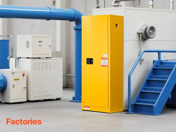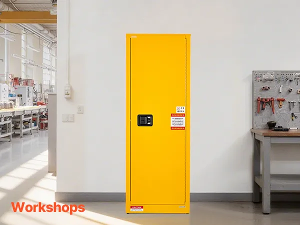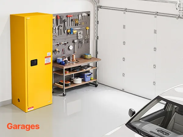 Vielseitig für verschiedene Umgebungen: Dieser Lagerschrank für brennbare Flüssigkeiten vereint Sicherheit und Komfort und ist daher ideal für Werkstätten, Produktionsanlagen, Garagen und andere Bereiche, in denen brennbare oder entzündliche Materialien sicher gelagert werden müssen