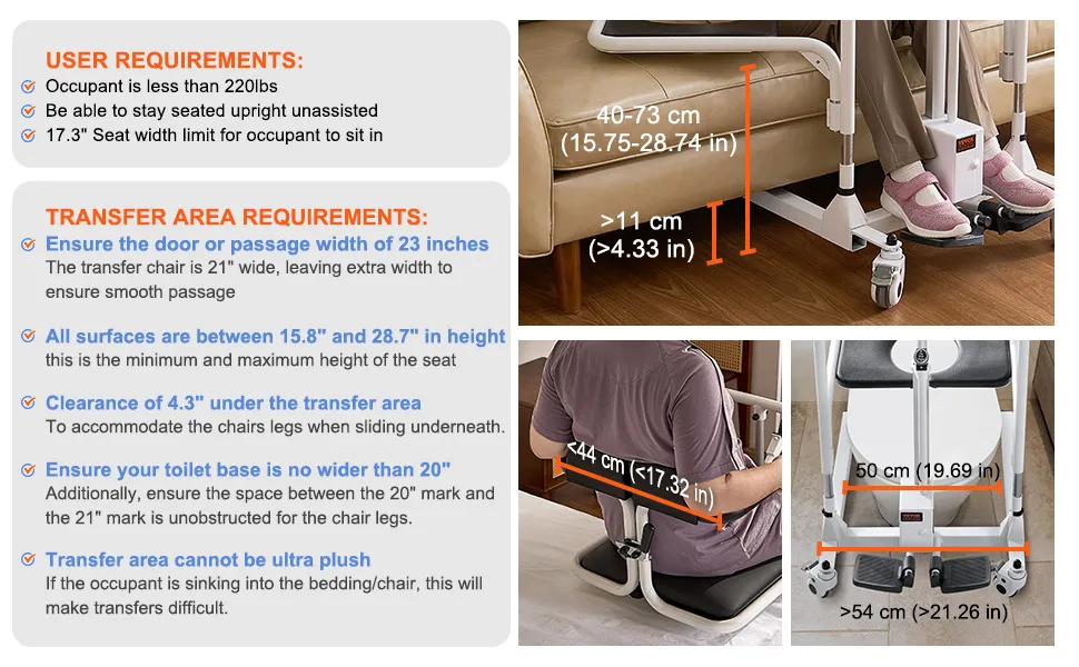 VEVOR Elektrischer Patientenlift-Transferstuhl, elektrischer Ein-Knopf-Rollstuhl mit um 180° geteilter Sitzfläche und Bettpfanne, Badezimmer-Nachtstuhl mit feststellbaren Lenkrollen für Senioren mit Behinderung, 220 Pfund