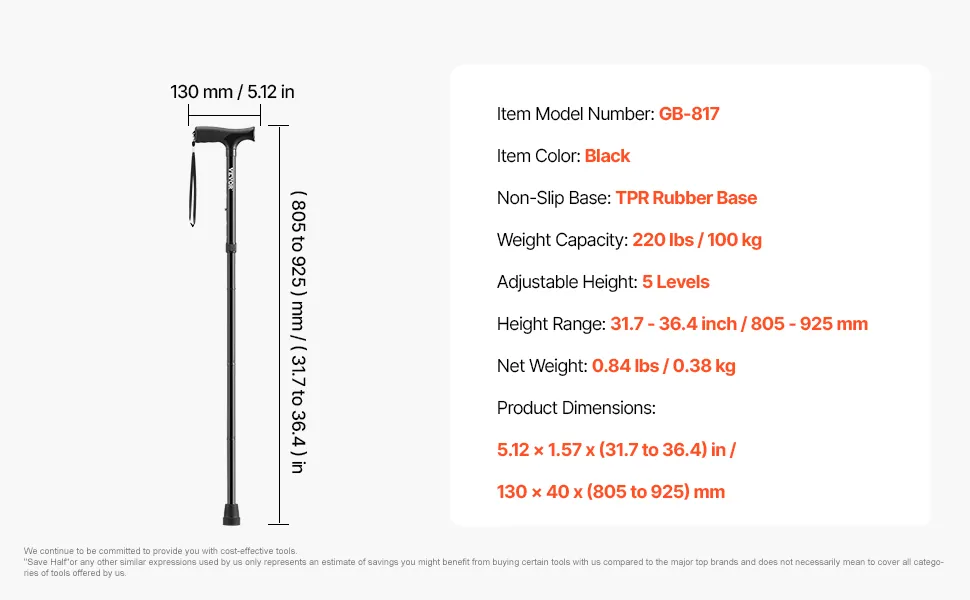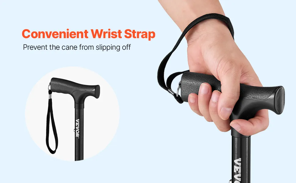 VEVOR Gehstock, zusammenklappbarer Spazierstock mit 5-fach einstellbarer Höhe (805-925mm), Gehstütze, Gehhilfe aus Aluminium für Senioren und Erwachsene, Wanderstock 100 kg belastbar