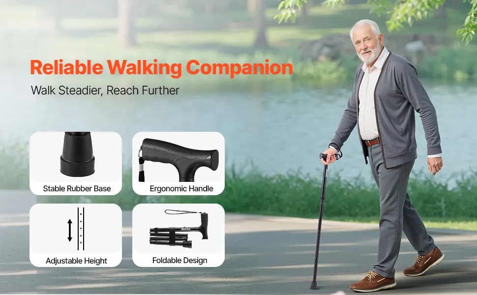 Diese Gehhilfe für Männer und Frauen wurde aus leichten Materialien gefertigt und lässt sich leicht tragen. Dank ihres kompakten, faltbaren Designs lässt sie sich mühelos in einem Rucksack oder Gepäck verstauen und ist somit ein idealer Begleiter für den Innen- und Außenbereich.