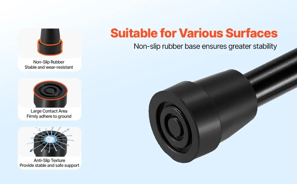 Stabile Basis für jedes Gelände: Diese Gehhilfe verfügt über eine rutschfeste Spitze aus strapazierfähigem TPR-Gummi und bietet hervorragende Stabilität, verbesserte Traktion und volle Gewichtsunterstützung. Sie funktioniert gut auf Gras, Holzböden oder Fliesen und ermöglicht es Benutzern, sich stabil und einfach auf verschiedenen Untergründen zu bewegen.