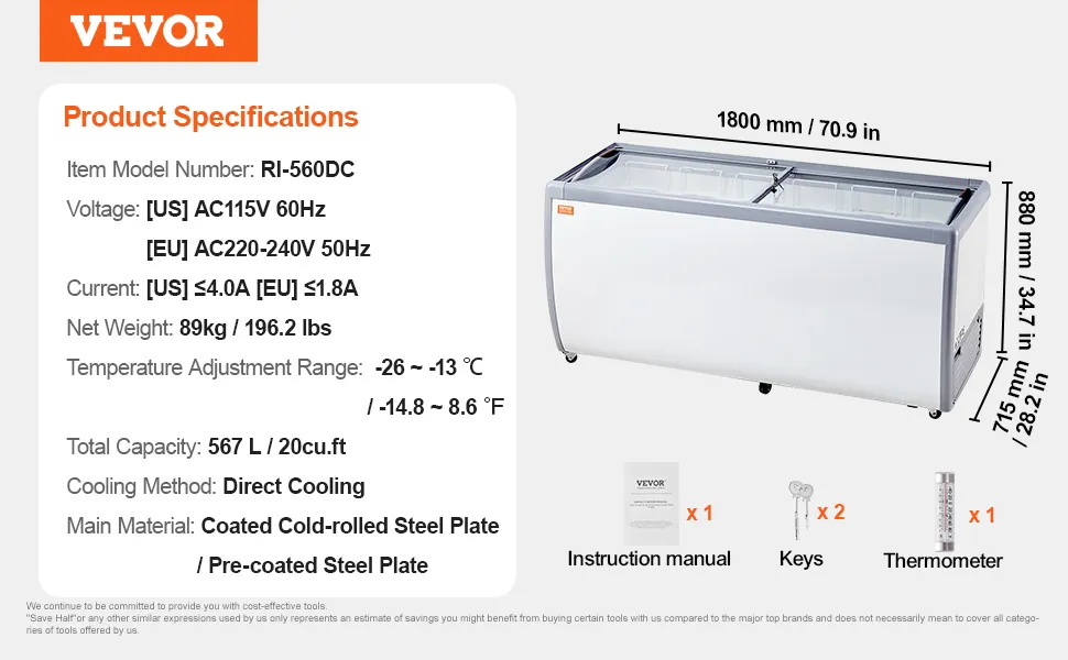 Einstellbare Temperatur: Die Eisvitrine verfügt über einen mehrstufigen Temperatureinstellbereich von-14,8 bis 8,6 °F (-26 bis -13 °C), um unterschiedlichen Gefrieranforderungen gerecht zu werden. Der Thermostat hält das Eis in optimalem Zustand und spart gleichzeitig Energie.