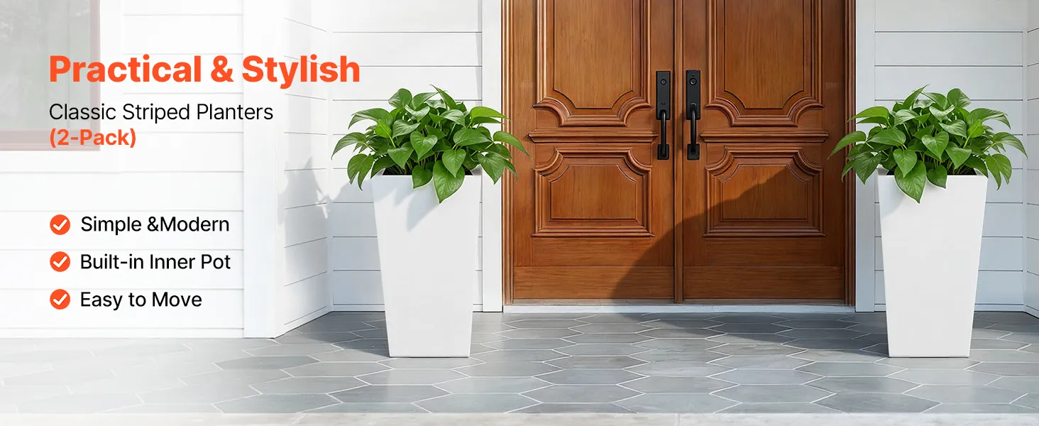 Klares & modernes Design: Mit ihren schlanken, konischen Linien und dem zeitlosen Streifenmuster fügen sich diese hohen Blumentöpfe für den Außenbereich mühelos in jede Einrichtung ein – von modern bis traditionell. Ob drinnen oder draußen, sie verleihen Ihrem Zuhause Eleganz