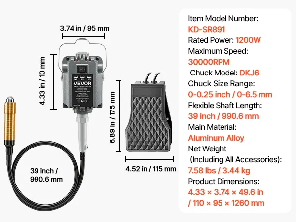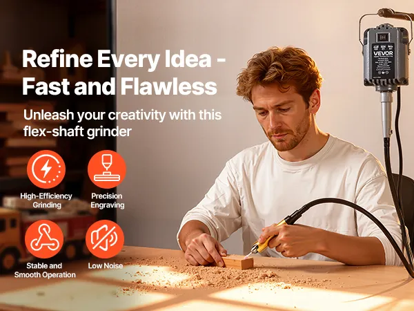Starke Motorleistung: Angetrieben von einem 1200-W-Kupfermotor mit Drehzahlen bis zu 30.000 U/min, bietet der VEVOR Flexwellenschleifer eine gleichmäßige und effiziente Leistung beim Schleifen, Fräsen, Trennen und Polieren. Unterstützt Vorwärts- und Rückwärtslauf für zusätzliche Flexibilität