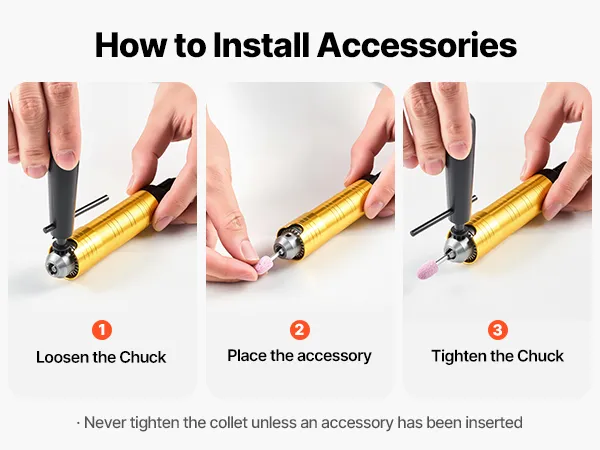 Hochpräzisions-Spannfutter: Ausgestattet mit einem 3-Backen-Spannfutter mit einem Spannbereich von 0–6,5 mm (0–0,25 Zoll) hält dieses Rotationswerkzeug mit flexibler Welle Zubehörteile sicher und rutschfest. In Kombination mit einer 990,6 mm (39 Zoll) langen, verlängerten flexiblen Welle für verbesserte Reichweite und Kontrolle.