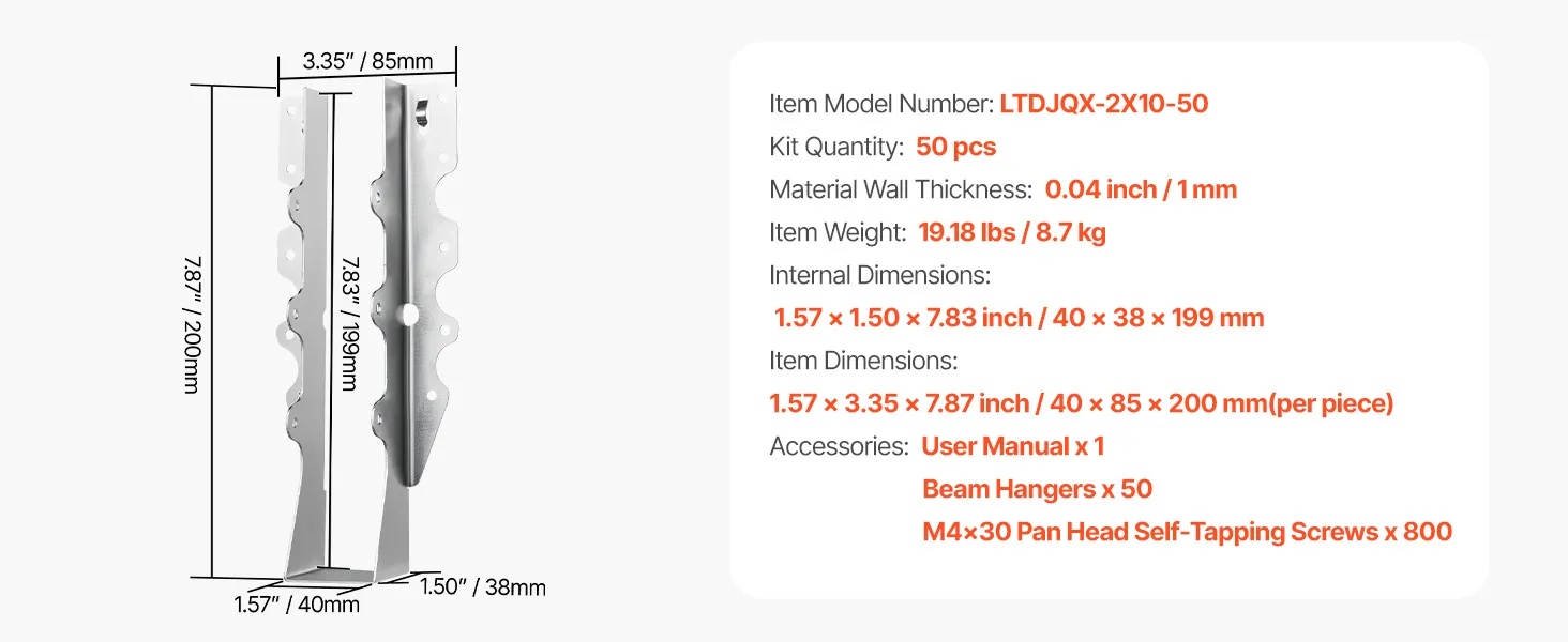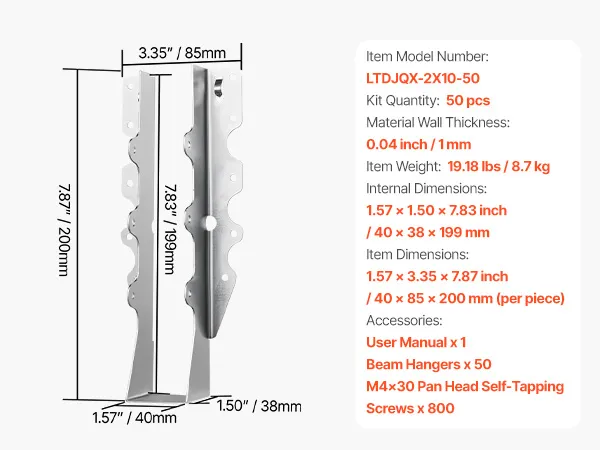 Kompatible Abmessungen: Dieser Balkenträger passt für Holz mit den Abmessungen 40 x 20 cm und misst 4 x 8,5 x 20 cm. Er entspricht den Standardmaßen für einen festen und sicheren Sitz. Hergestellt aus hochwertigem Stahl bietet er langlebigen, langfristigen Halt für Holzrahmenkonstruktionen wie Dächer, Terrassen, Decken und Böden.
