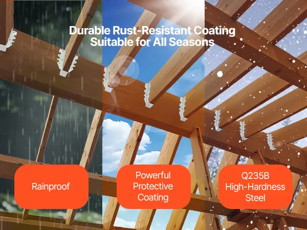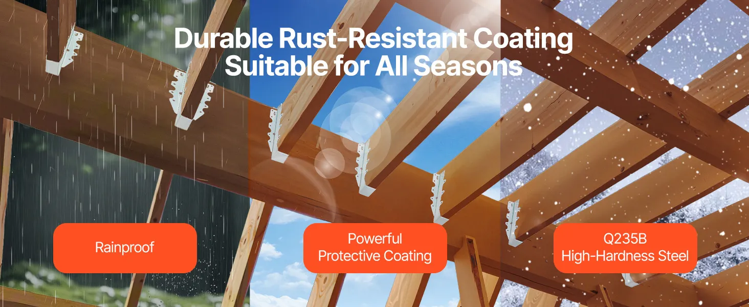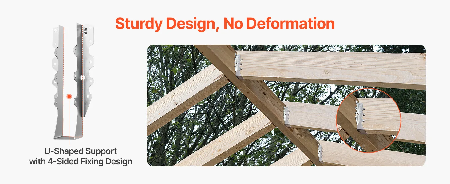 Diese Sparrenhalterungen sind mit einer Vielzahl von Innen- und Außenkonstruktionen kompatibel – Balken, Holzhütten, Gartenrahmen und mehr. Ob Heimwerker oder professioneller Bau – sie bieten solide Unterstützung für jedes kreative Projekt.
