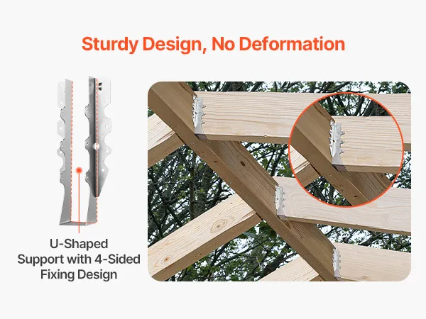 Verstärkte Stützstruktur: Diese Sparrenbinder für Hurrikanbinder verfügen über ein U-förmiges Design mit vierseitiger Befestigung, um Verdrehen oder Verziehen zu verhindern. Sie bieten starken, stabilen Halt unter Dauerbelastung – ideal für Dach- und Holzrahmenkonstruktionen.