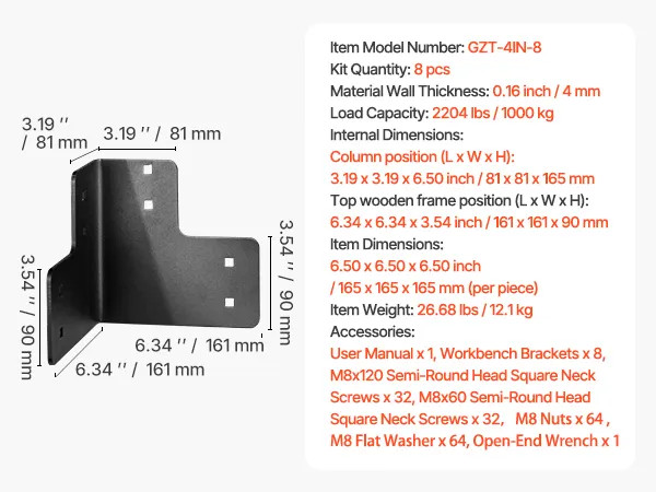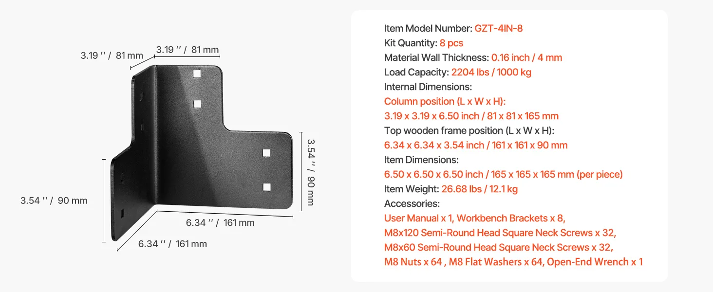 Unsere 4,1 mm dicken Stahlhalterungen halten bis zu 1000 kg. Die schwarze Beschichtung schützt vor Rost und Korrosion. Das Paket enthält 8 vorgebohrte Löcher und ein komplettes Montageset für den schnellen Aufbau. Ideal für Gewächshäuser, Bänke, Pflanzregale, Werkbänke, Regale, Käfige und mehr.