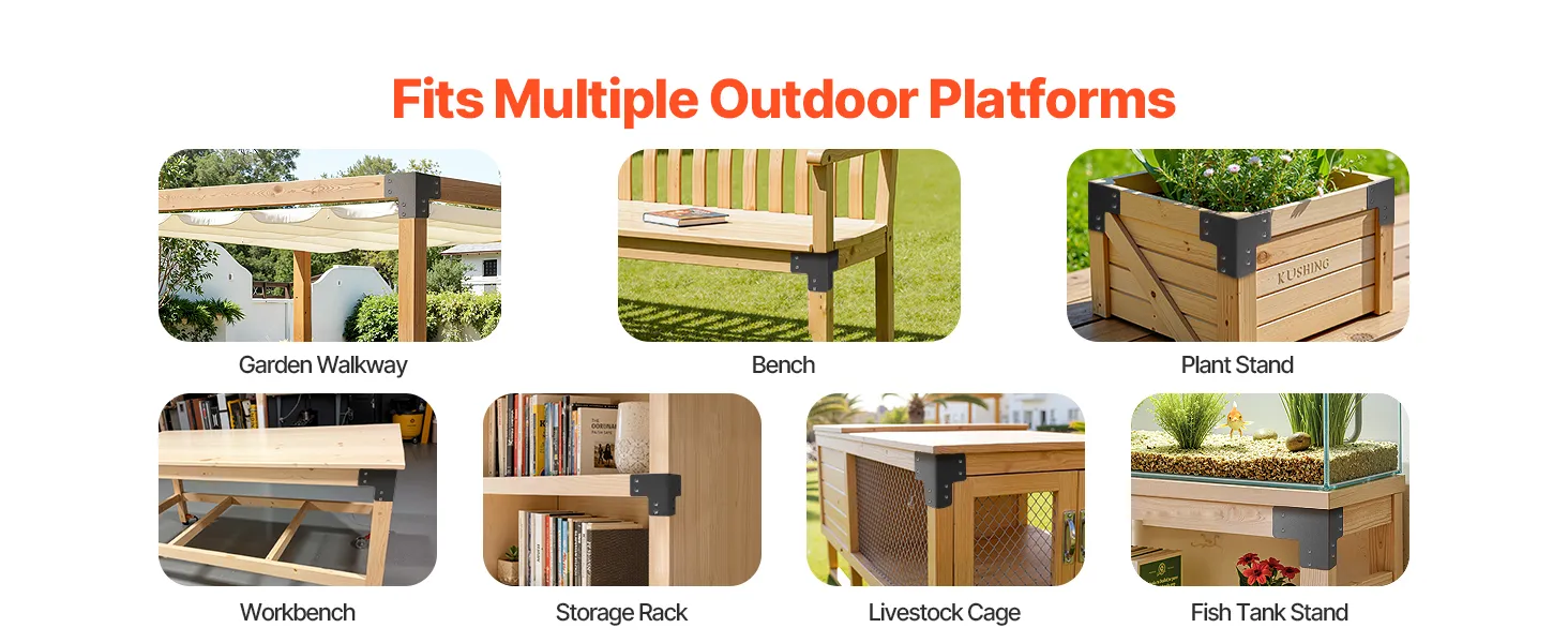 Unsere Werkbankbeinhalterungen eignen sich für eine Vielzahl von Innen- und Außenkonstruktionen wie Gewächshäusern, Bänken, Pflanzregalen, Arbeitsstationen, Lagerregalen, Viehkäfigen und Aquarienständern. Ob für den Eigengebrauch oder für Outdoor-Projekte – sie bieten starken, zuverlässigen Halt.
