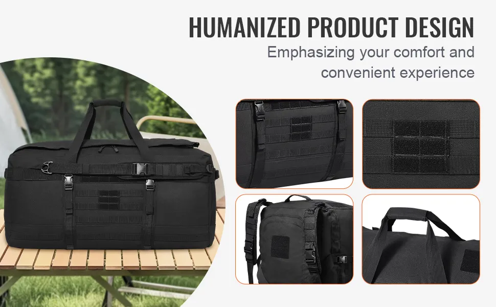 VEVOR große taktische Reisetasche Sportausrüstung 100 L mit Molle-Design & Schuhfach, militärische Reisetasche Ausrüstungstasche Rucksack für besondere Arbeit Sport Camping Kleidung Schwarz