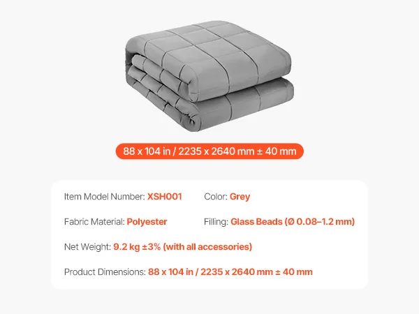VEVOR Gewichtsdecke, 9 kg, Therapiedecke 2235x2640 mm, Kingsize, schwere Decke mit Glasperlen, Ganzjahresgebrauch, geeignet für Erwachsene mit 90–113 kg, Linderung von Angstzuständen und Stress, grau