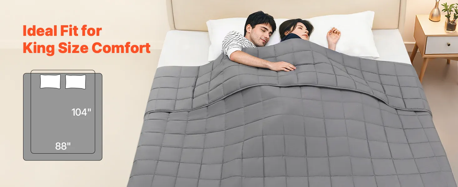 Ideale Passform für Kingsize-Betten: Die gewichtete Kingsize-Decke mit den Maßen 235 x 2640 mm passt auf ein Queensize-Bett und bietet umfassenden Komfort für die Verwendung allein oder zu zweit.