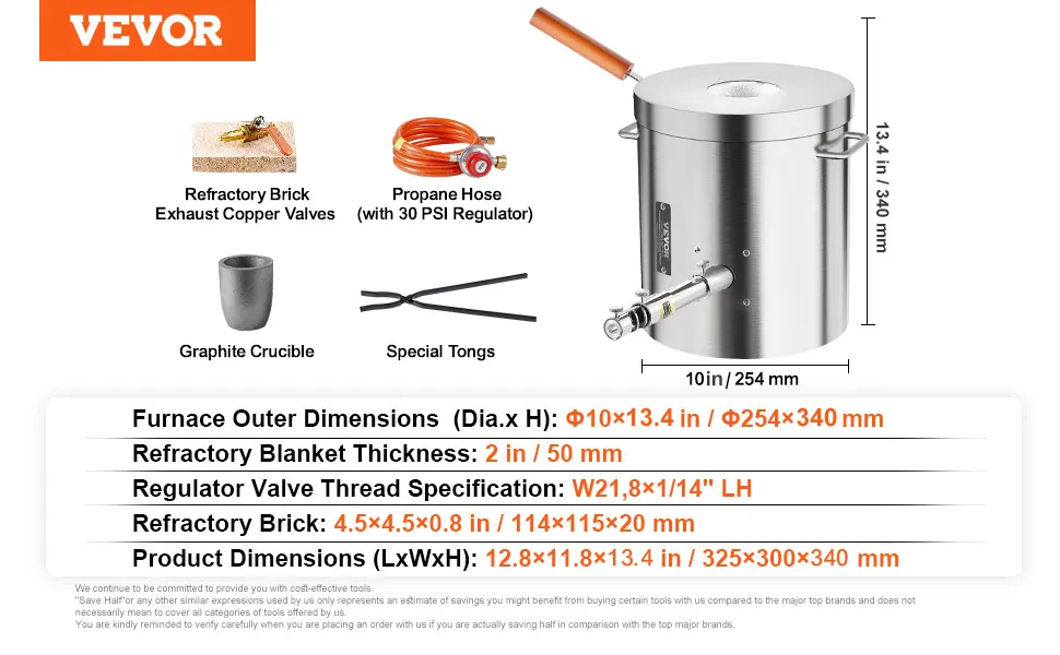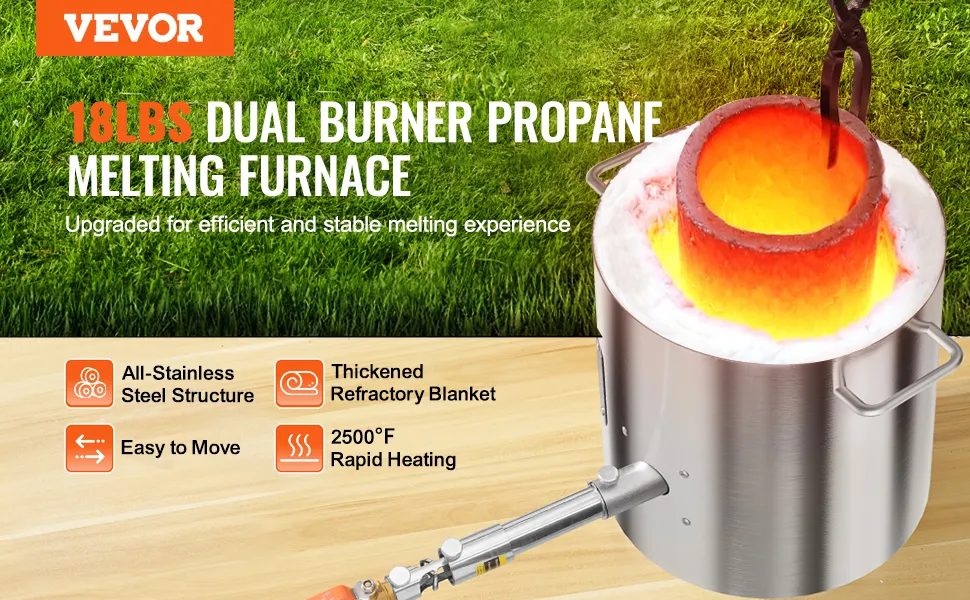VEVOR Propan Schmelzofen Set, 8 kg Gas Metall-Schmelzofen-Set, Gießerei-Heimofen mit Tiegel Zange Holzgriff Schmelzgusswerkzeug für Gold Silber Kupfer Aluminium Metallrecycling