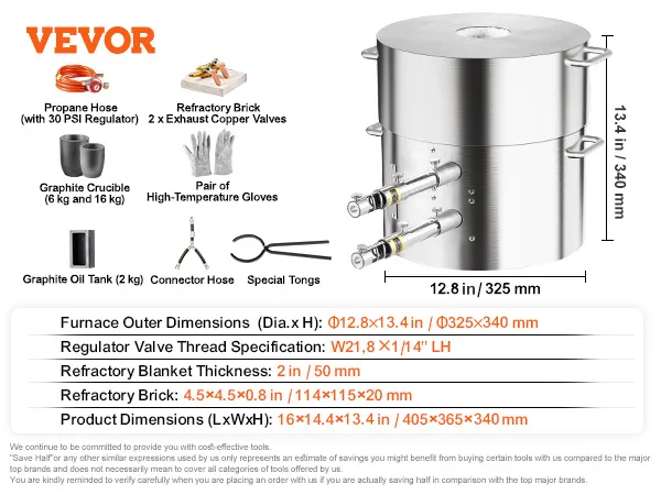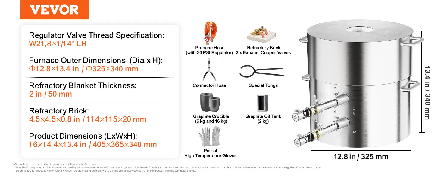 Large capacity for extensive melting: With a generous capacity of 35 lbs (15.88 kg), you can melt more material in a single batch. Whether for large-scale production or personal projects, this metal melting furnace kit meets your needs and unleashes your creativity.