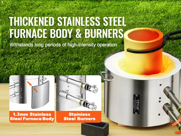 The reinforced stainless steel body and burners of the melting furnace set offer greater strength and can withstand high temperatures and intensive use over extended periods.
