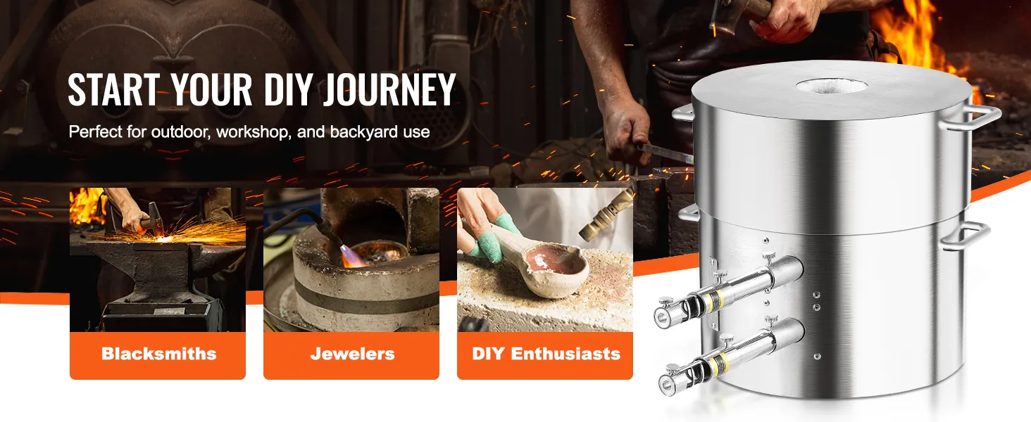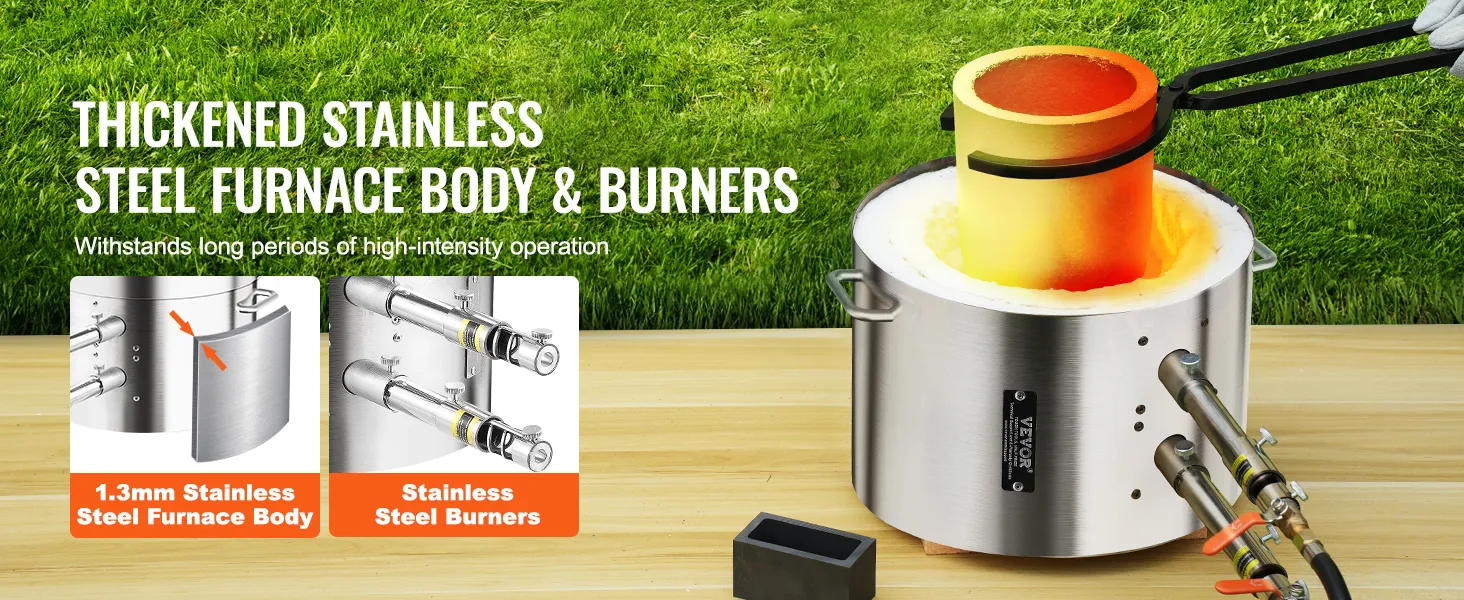 Embark on an exciting smelting journey with our propane metal melting furnace. Whether in the great outdoors, a busy workshop, or your own backyard, this melting furnace adapts perfectly to any environment.