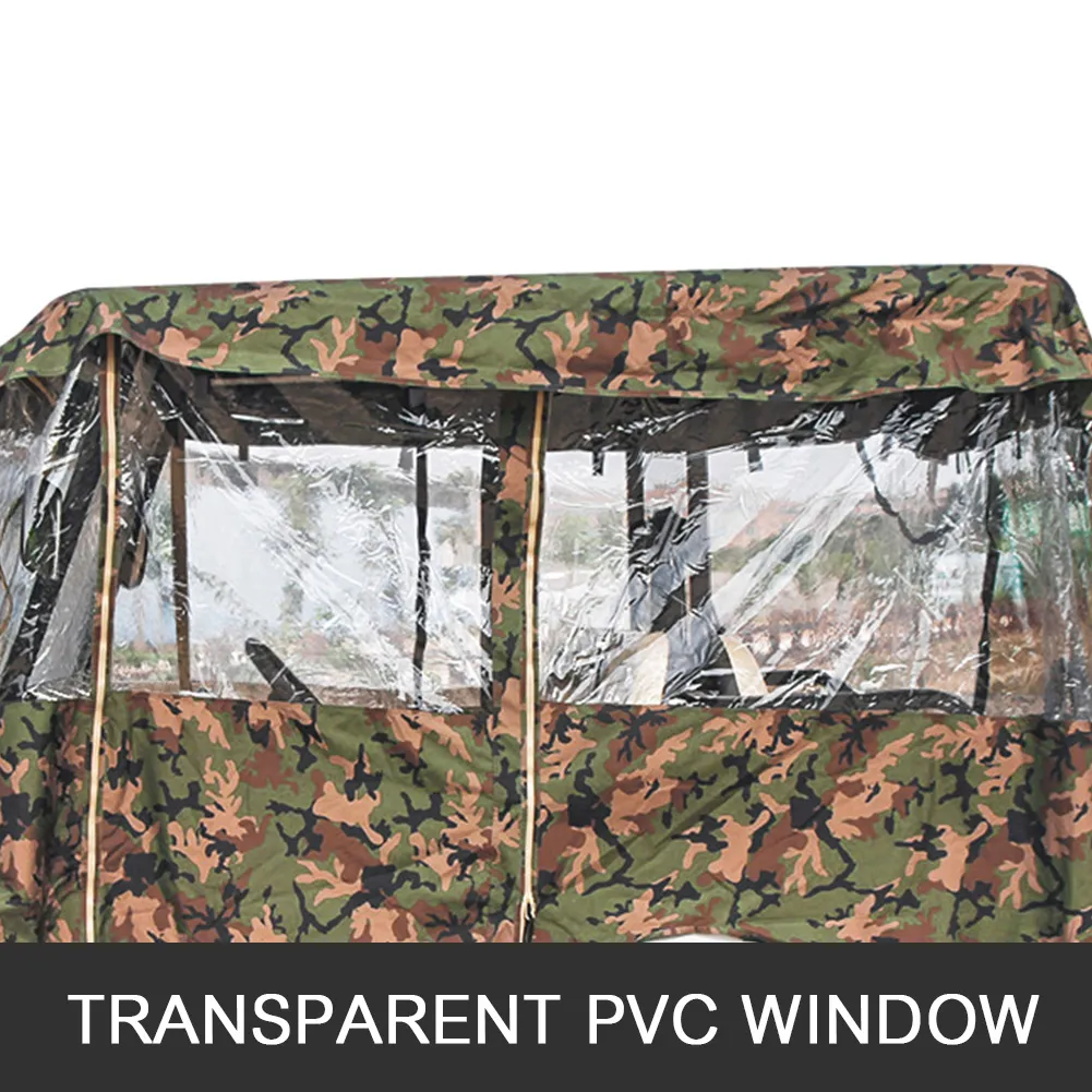300D Oxford-Stoff mit PVC-Beschichtung, PVC-Fenster und #10-Harz- Reißverschluss sorgen für dauerhaften Gebrauch.