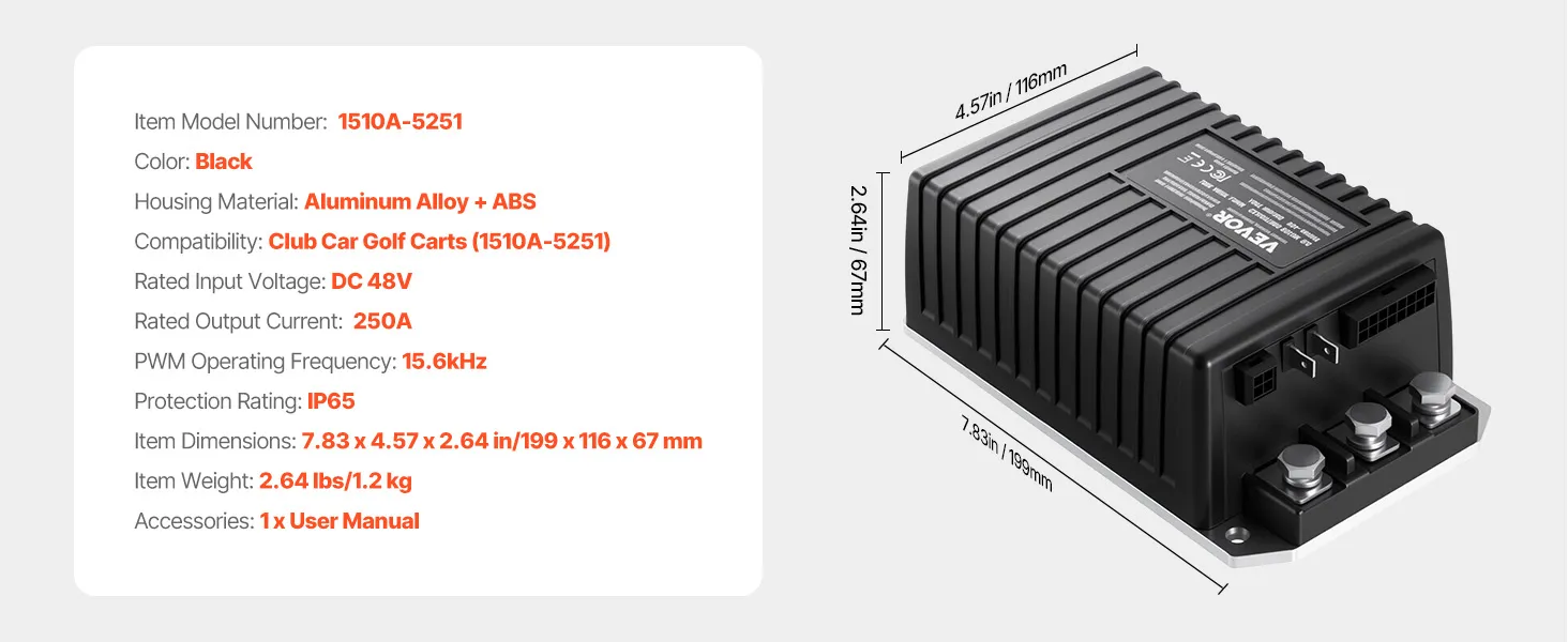 Seamless compatibility: This speed controller was specifically designed for Club Car golf carts and is compatible with model 1510A-5251. Easy replacement without complex adjustments, simplifying your upgrade process.