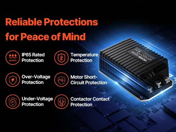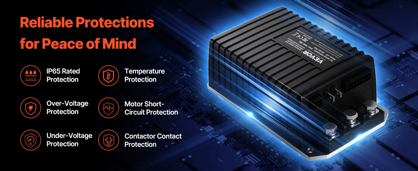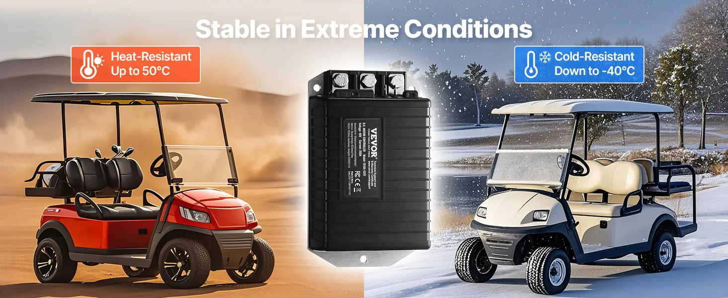 The golf cart controller has several safety features to ensure stable operation even in harsh weather conditions. It is designed to reliably protect your golf cart on every trip.