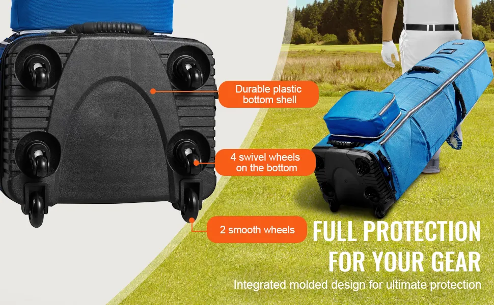 Sicher und stabil: Die Golfgepäckhülle ist für den Transport von mehr Schlägern und Ausrüstung konzipiert und ist schwerer. Sie verfügt über Rollen und einen Griff für einfache Mobilität. Mit optimierten Rollen, einer integrierten Form und einem 3D-Bodenschutz für ultimativen Rundumschutz. Sie reduziert den Verschleiß um 95 % und sorgt für ein lang anhaltendes und reibungsloses Trageerlebnis.