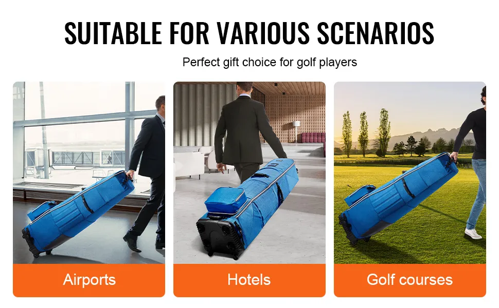 Faltbare Reisetaschen für Golfschläger wurden entwickelt, um mehr Schläger und Ausrüstung zu transportieren, was sie schwerer macht. Sie sind mit Rädern und einem Griff ausgestattet, um den Transport zu erleichtern, und verfügen über optimierte Räder und eine hochwertige Gummibasis.