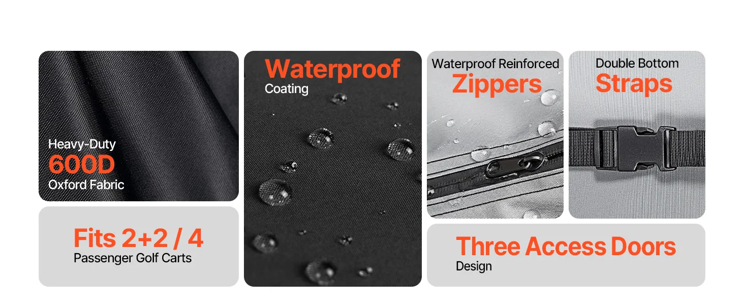 VEVOR Golfwagenabdeckung für 2+2/4-Sitzer-Golfwagen (die Meisten Golfcarts von Club Car, Yamaha, EZGO & Honda), Regenabdeckung aus 600D-Oxford-Gewebe, mit PU-Beschichtung & 3 Reißverschlusstüren VEVOR Golfwagenabdeckung für 2+2/4-Sitzer-Golfwagen (die Meisten Golfcarts von Club Car, Yamaha, EZGO & Honda), Regenabdeckung aus 600D-Oxford-Gewebe, mit PU-Beschichtung & 3 Reißverschlusstüren