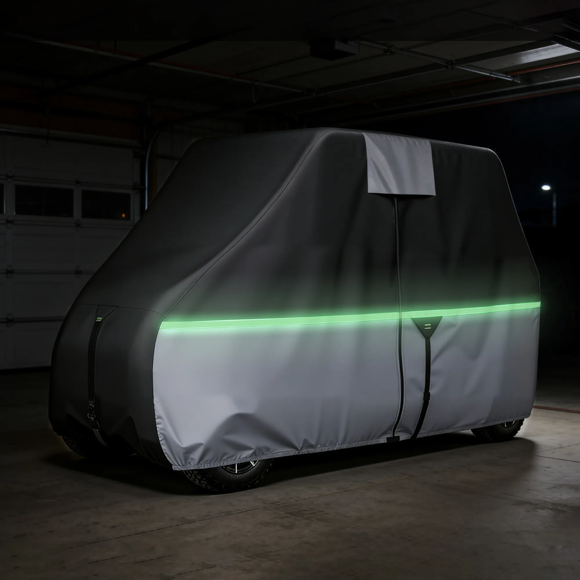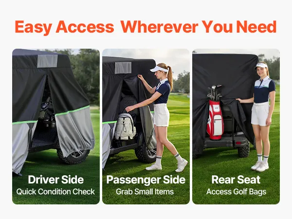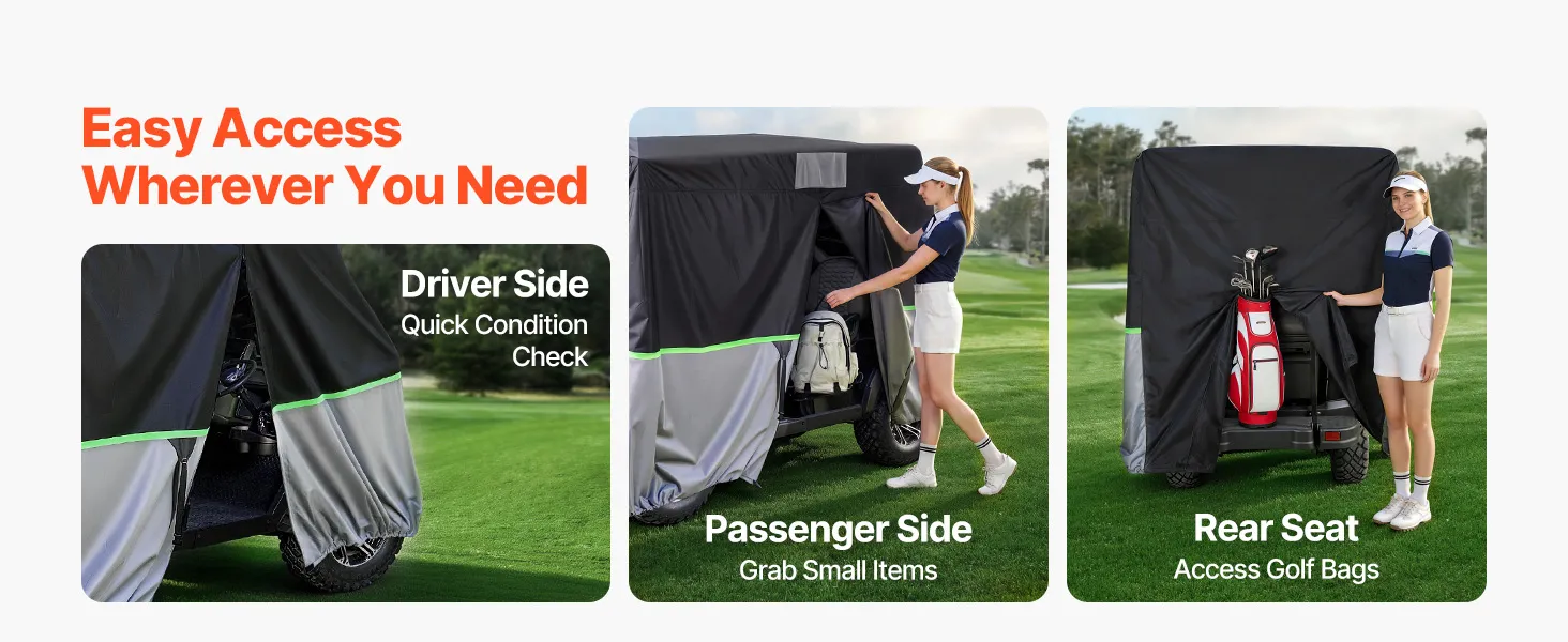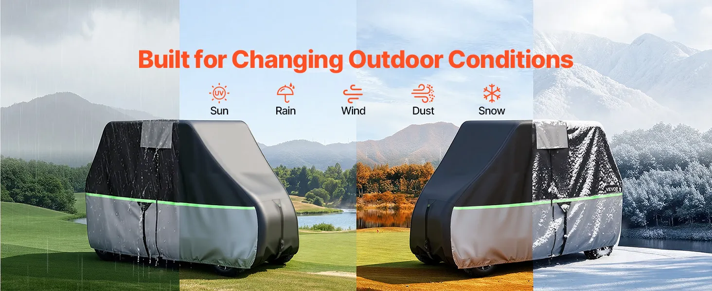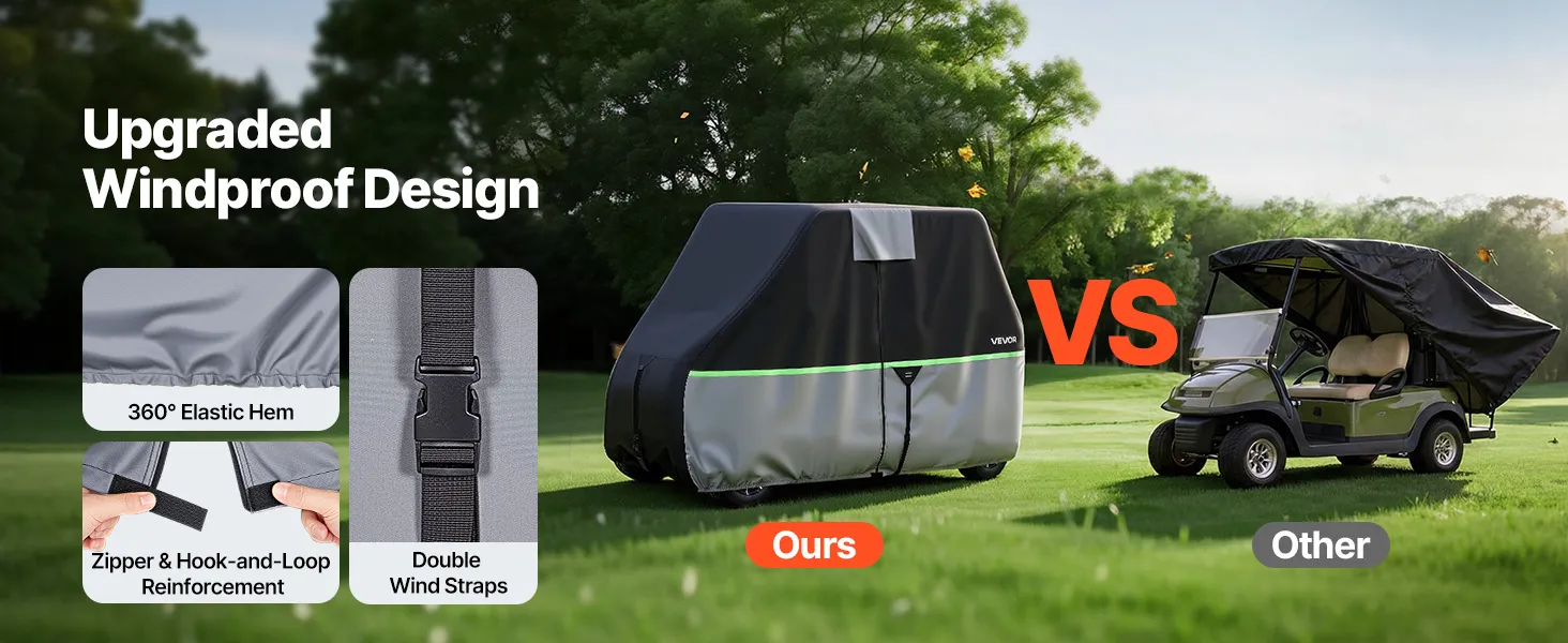 • Verstärkter Windschutz: Eine um 360° elastische Unterkante und doppelte Windriemen sorgen dafür, dass diese Clubwagenabdeckung sicher auf dem Wagenkörper sitzt. Das Design sorgt für mehr Stabilität bei windigen Bedingungen und eignet sich daher für die Verwendung auf Außenparkplätzen