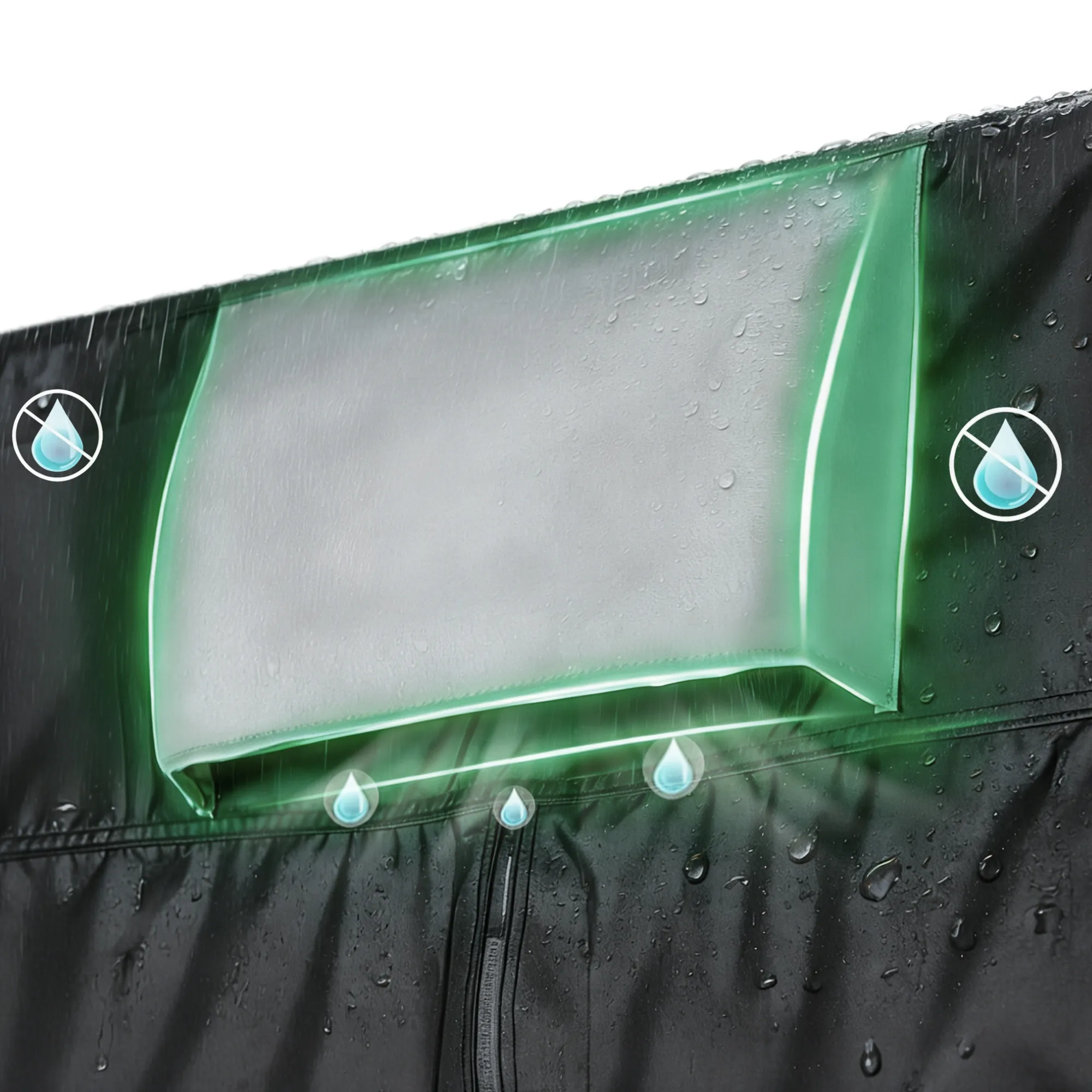 Zwei eingebaute Lüftungsschlitze sorgen für Luftzirkulation im Inneren des Wagens, reduzieren stickige Bedingungen und unterstützen ein trockeneres und komfortableres Klima im Innenraum während des Parkens im Freien.