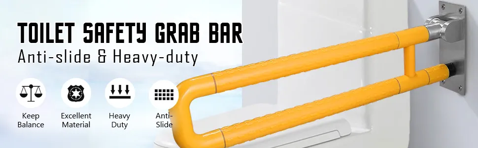 • 【PREMIUMQUALITÄT】 - Farbe: Gelb; Produktgröße: 23,7 x 7,8 x 2,8 "(LxHxB); Produktgewicht: 4,4 Pfund (ca. 2 kg). Diese Toilettensicherheitsschiene besteht aus dickem Edelstahl und ist mit hochwertigem ABS-Kunststoff umwickelt.