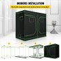 Der Rahmen des Growzeltes besteht aus 20 Stahlstangen und 12 technischen Nylon-Anschlüssen, die robust und korrosionsbeständig sind. Darüber hinaus ist die Oberseite des Zeltes mit 6 Stützstangen zum Aufhängen von Beleuchtungsgeräten ausgestattet.