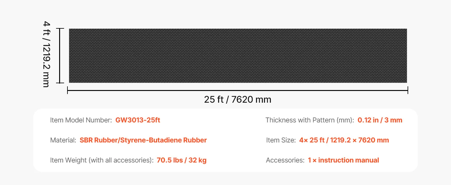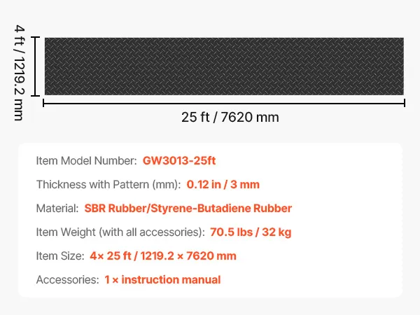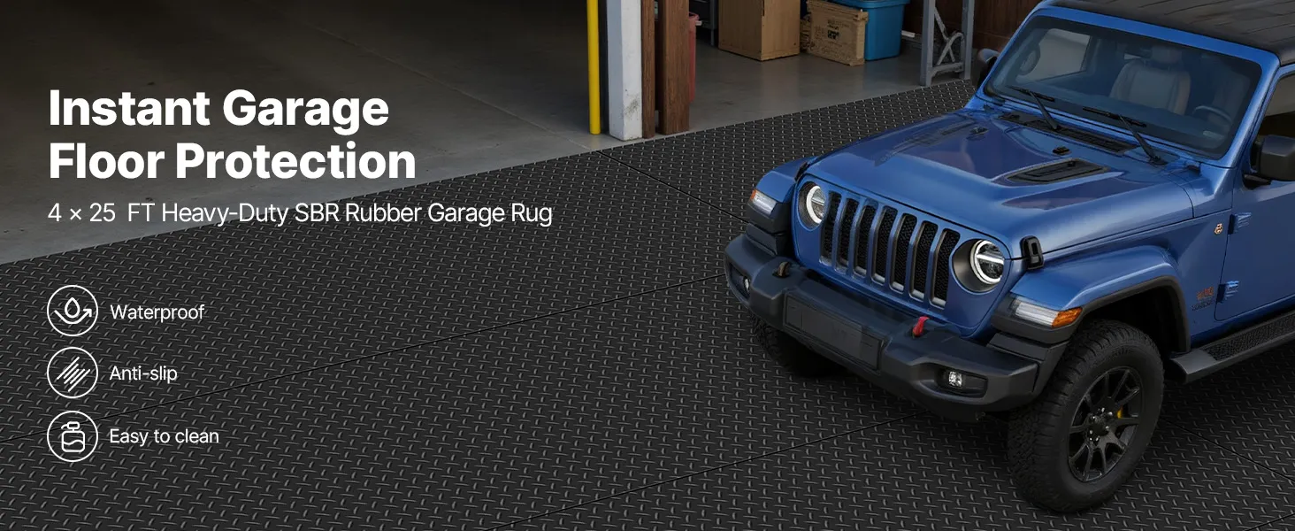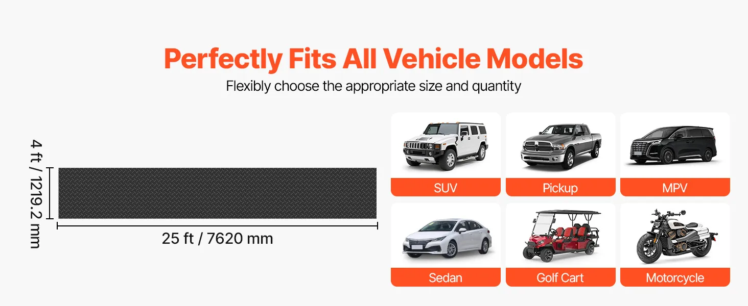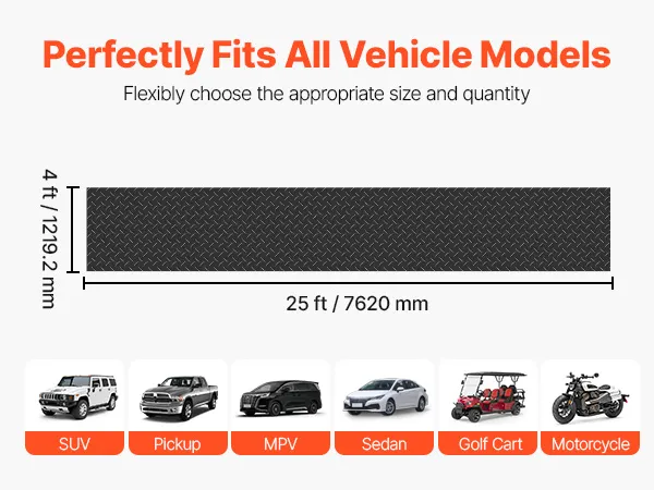 Größere Reichweite: Diese Gummimatte misst 1219,2 x 7620 mm (4 x 25 Fuß) mit einer Fläche von 9,3 ㎡ (100 Quadratfuß) und ist für mittelgroße SUVs, kompakte SUVs, Sportwagen, Motorräder und Golfwagen geeignet. Sie eignet sich auch ideal für Lagerhallen, Kofferräume oder Gehwege. Messen Sie die Größe vor dem Kauf.