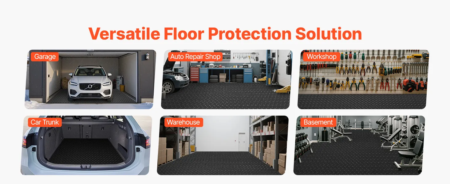 Wählen Sie die Garagenbodenrolle für zuverlässigen, druckfesten, rutschfesten und verschleißfesten Schutz. Die wasserdichte Oberfläche lässt sich leicht reinigen und die große Deckkraft passt für die meisten Fahrzeuge oder bietet eine gepolsterte Fläche in Lagerhallen.