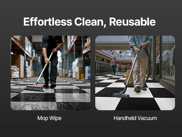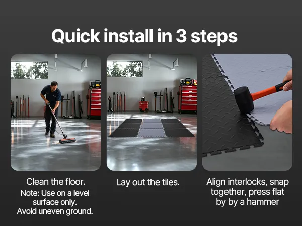 Schnelle Verlegung: Kein Kleber erforderlich. Verwenden Sie einfach einen Gummihammer, um die Kanten fest zu fixieren und so eine schnelle, stabile Verlegung zu gewährleisten. Einzelne Fliesen lassen sich für die routinemäßige Wartung oder gründliche Reinigung leicht entfernen, was die Instandhaltung einfach und effizient macht.