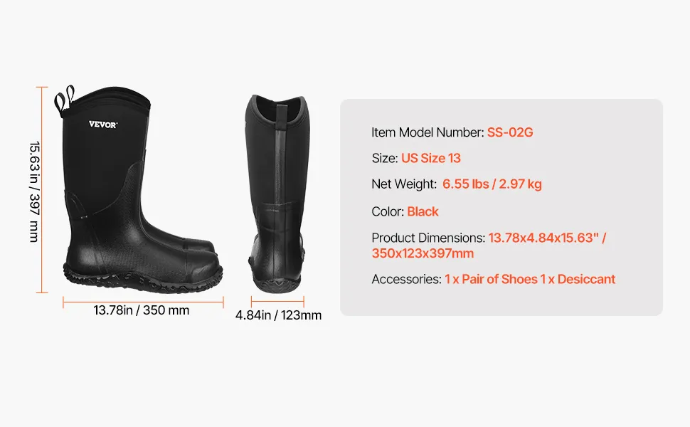 VEVOR Gummistiefel mit Stahlkappe für Herren, Schutzschuhe, wasserdichte Regen-Angelstiefel, rutschfeste Arbeitsschuhe für den Außenbereich, leicht und langlebig, für Bau, Landwirtschaft, Größe 13 US