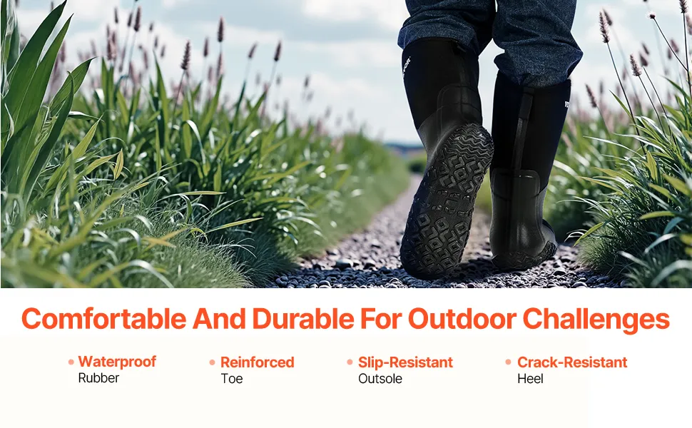 Diese Outdoor-Schuhe sind aus strapazierfähigem Gummi gefertigt und verfügen über eine rutschfeste Außensohle, eine verstärkte Zehenpartie und eine rissfeste Ferse. So können Sie die Herausforderungen im Freien mühelos meistern und gleichzeitig ein bequemes und langlebiges Tragegefühl genießen.