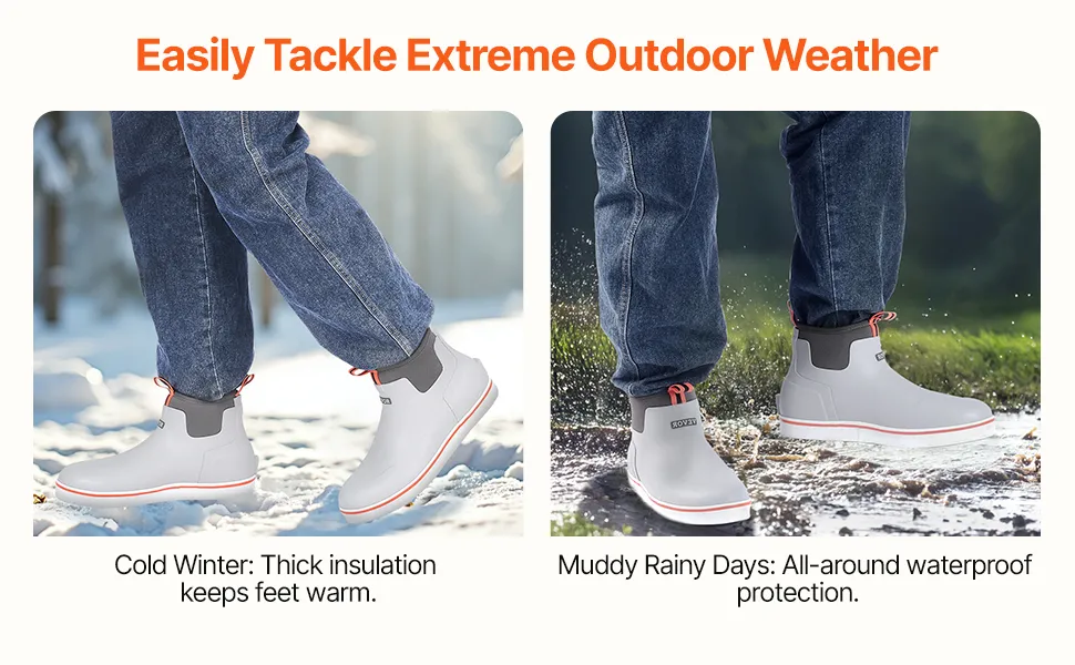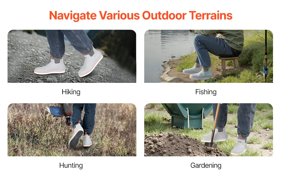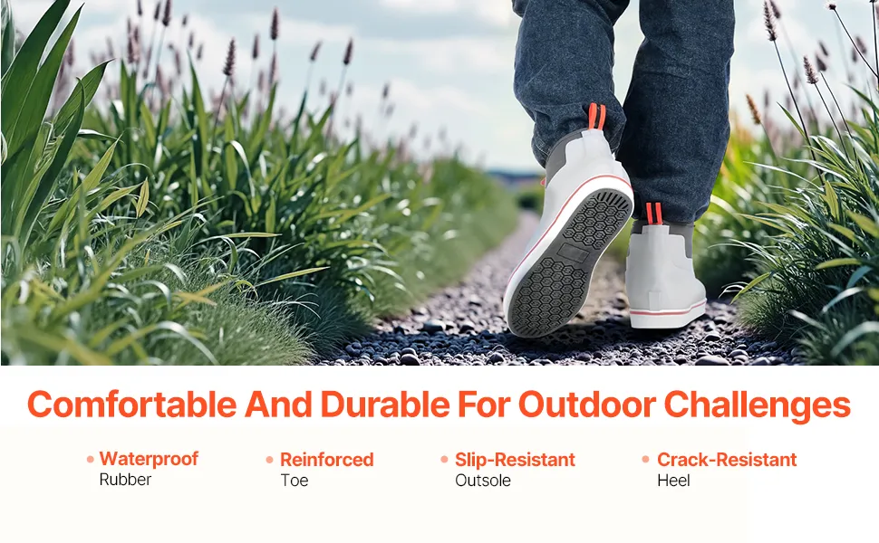 Diese Outdoor-Schuhe sind aus strapazierfähigem Gummi gefertigt und verfügen über eine rutschfeste Außensohle, eine verstärkte Zehenpartie und eine rissfeste Ferse. So können Sie die Herausforderungen im Freien mühelos meistern und gleichzeitig ein bequemes und langlebiges Tragegefühl genießen.