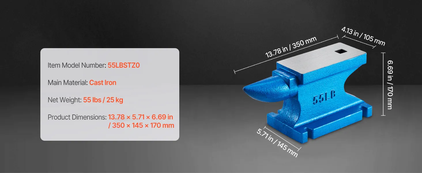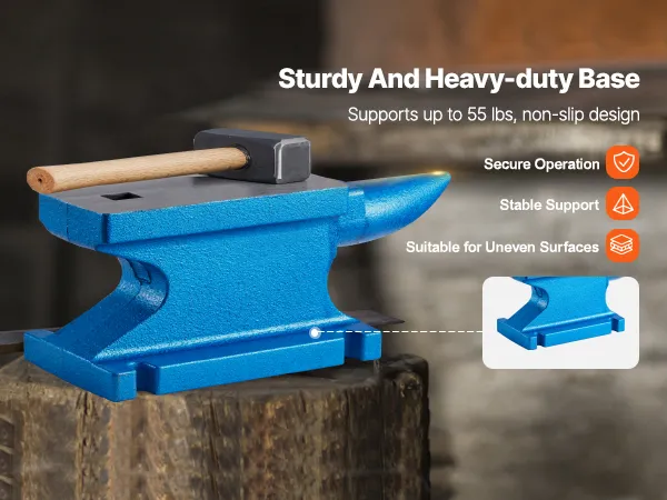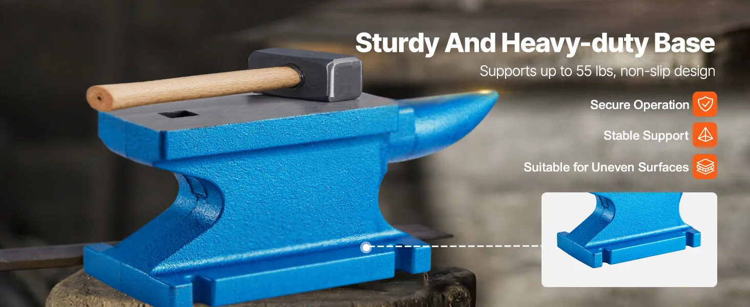 25 kg Premium Material: This cast iron anvil is made of drop-forged, high-strength iron, characterized by its strength and durability. Our blacksmith's anvil is hard enough to withstand heavy blows. The solid base provides additional stability.