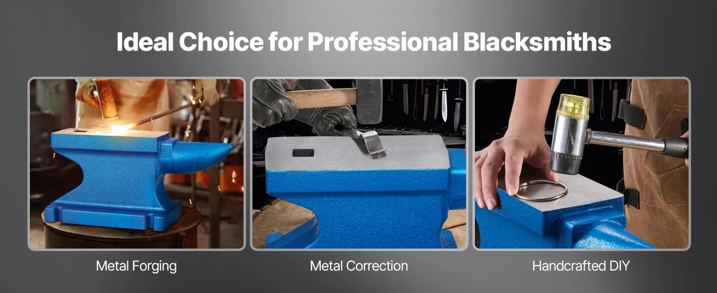 Wide range of applications: The iron anvil is ideal for hammering, straightening, and shaping workpieces. Metalworkers and blacksmiths frequently use it in any metal workshop. It is excellent for riveting, flattening, forging, and shaping metal.