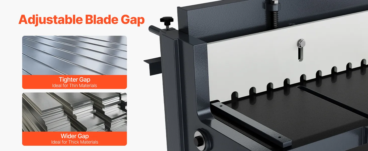 Der Klingenabstand unserer Schere ist manuell einstellbar. Ein kleinerer Abstand ist ideal für dünnere Materialien, während ein größerer Abstand besser für dickere Bleche geeignet ist. Diese Flexibilität ermöglicht präzise Anpassungen an die Schneidanforderungen der Materialien.