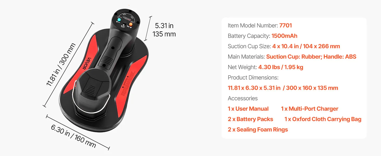 Druck- und Batterieanzeige: Der digitale Bildschirm des Vakuumsaugers zeigt den aktuellen Vakuum- und Batteriestand an, sodass Sie Druck und Ladung in Echtzeit verfolgen und jeden Lift problemlos planen können