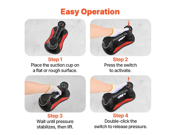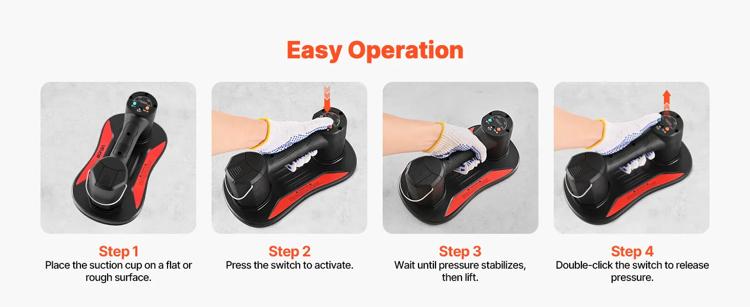 Sie richten den Saugnapf aus, drücken das Pad an und pumpen, um das Vakuum zu erzeugen. Das Fliesen-Saugnapfwerkzeug erfordert keine komplizierte Einrichtung oder zusätzliche Ausrüstung, sodass neue oder gelegentliche Benutzer schnell loslegen und ihre Projekte vorantreiben können.