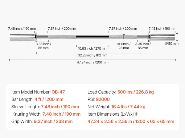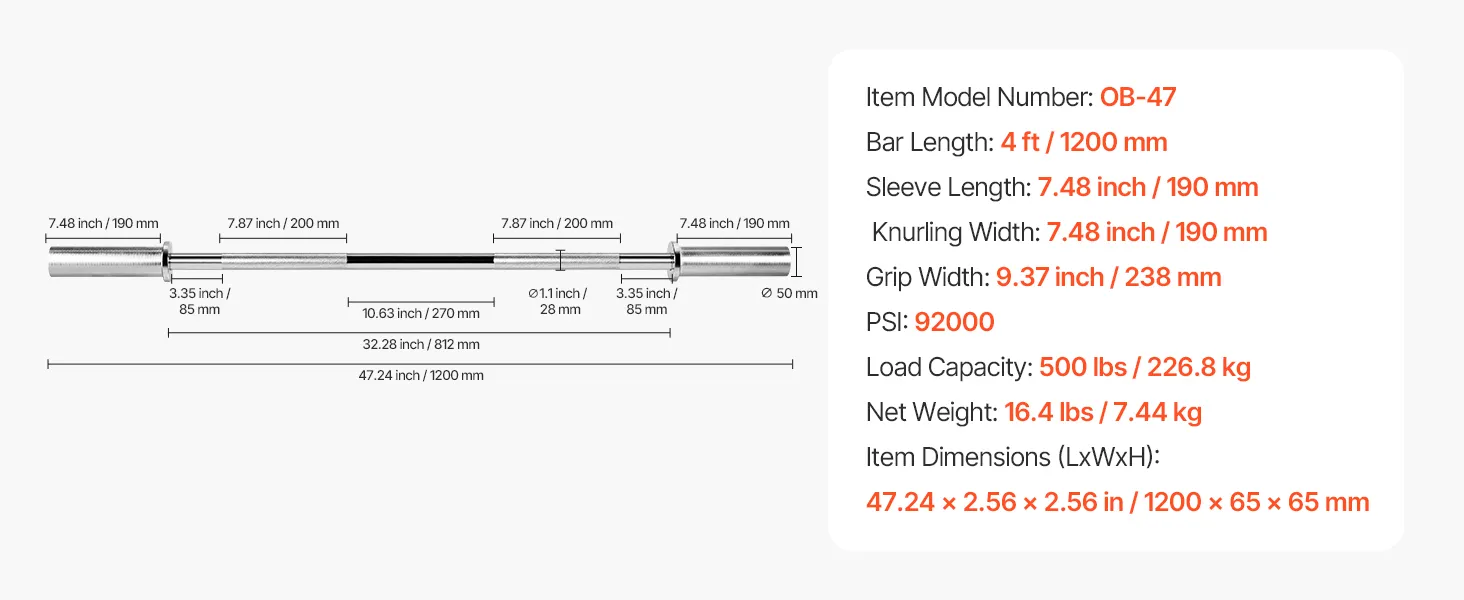 Diese Hantelstange trägt bis zu 227 kg und hat eine Zugfestigkeit von 92.000 PSI. Mit Messingbuchsen, Nadellagern und Diamanträndelung sorgt sie für Stabilität, sicheren Halt und komfortable Handhabung für effektives Krafttraining.
