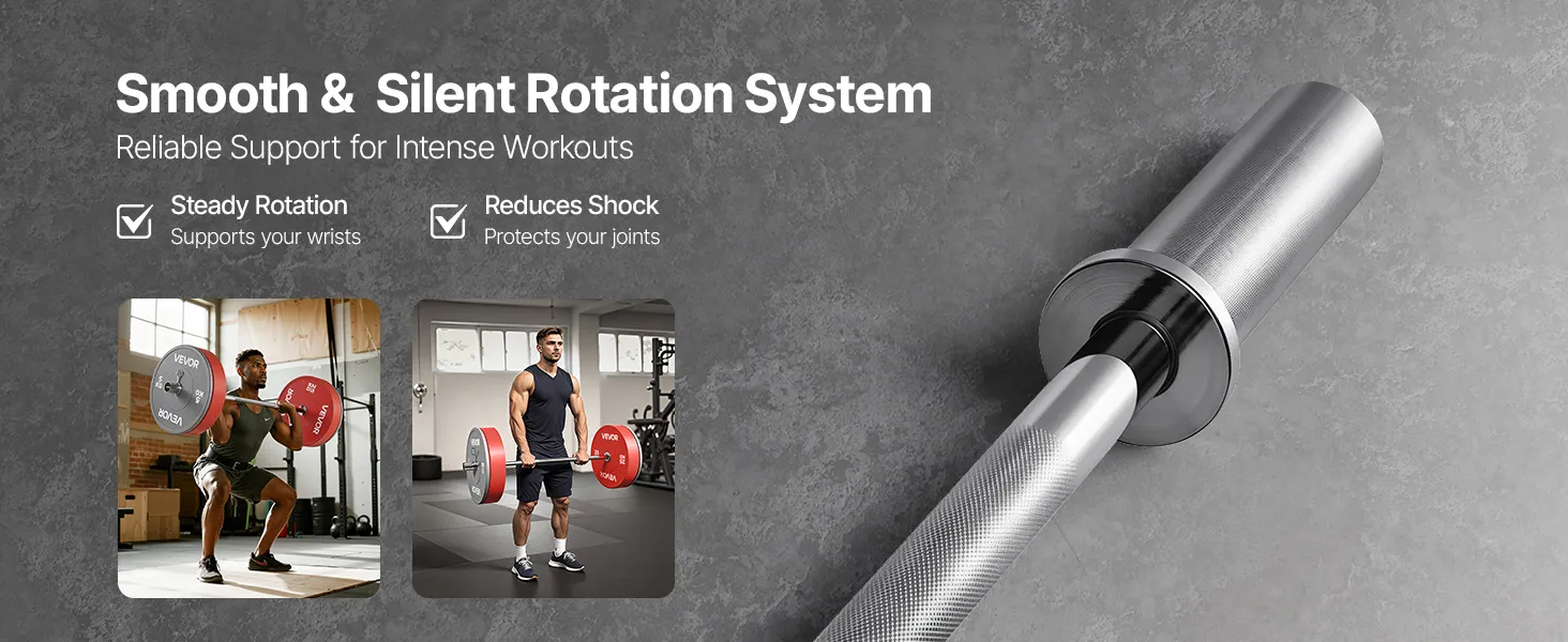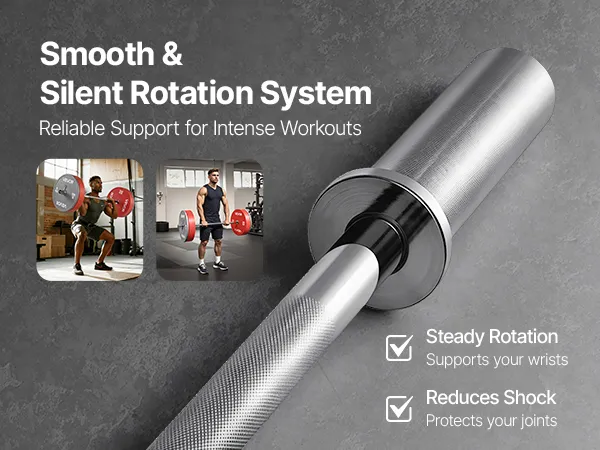 Die um 360° drehbaren Hülsen erhöhen die Stabilität und reduzieren die Belastung von Handgelenken und Unterarmen, wodurch die Gesundheit der Gelenke geschützt wird. Ob Bankdrücken, Rudern oder Kniebeugen – die Stange sorgt für eine gleichmäßige und leise Leistung und gewährleistet zuverlässige Unterstützung bei hochintensivem Training.
