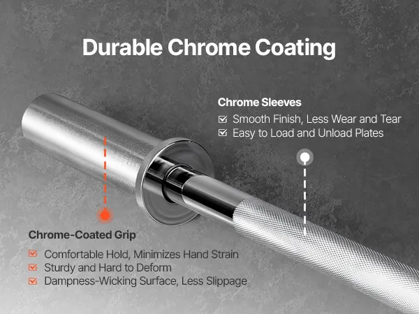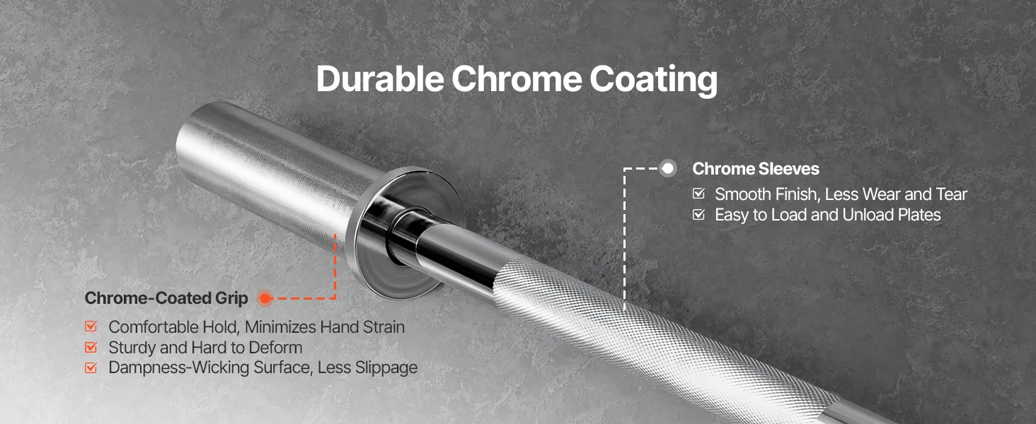 227 kg Tragkraft: Diese Langhantel ist aus hochfestem Vollstahl gefertigt und für extreme Gewichte mit einer maximalen Tragkraft von 500 lbs (227 kg) ausgelegt. Sie bietet hervorragende Tragfähigkeit und hohe Zugfestigkeit. Die verchromte Oberfläche schützt vor Verschleiß, Reibung und Oxidation und sorgt für lange Haltbarkeit beim täglichen Training