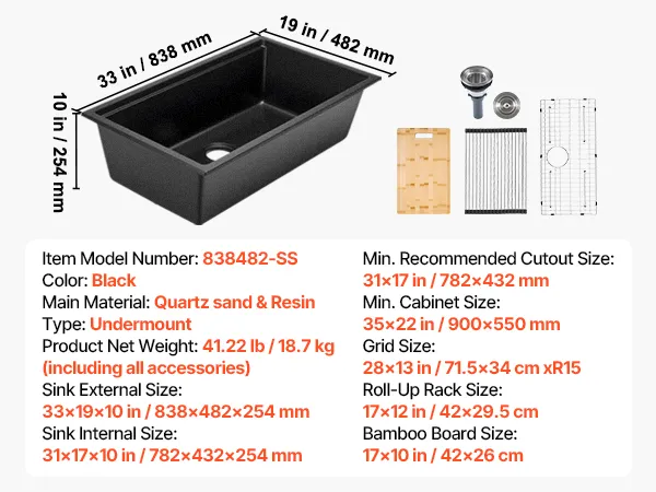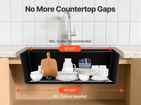 VEVOR Küchenspüle Granitspülen (838 x 482 x 254 mm) zur Aufputzmontage, Einbauspüle im Landhausstil mit Zubehörteilen, Haushaltsspülbecken für Wohnmobile, Vorbereitungsküchen, Bars, schwarz