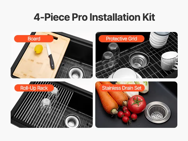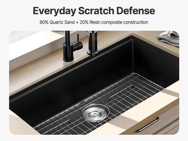 F: Ist das Material dieser Spüle leicht zu reinigen und zu pflegen? A: Ja! Die Oberfläche aus 80 % Quarzsand und 20 % Kunstharz ist porenfrei, sodass sich Flecken und Wasserflecken nur schwer festsetzen. Einfach mit einem feuchten Tuch abwischen. Die mattschwarze Oberfläche verbirgt Schlieren und ist somit pflegeleicht. F: Wird die Spüle beim Transport leicht beschädigt? A: Die Verpackung ist Stapel-, Vibrations- und Falltests mit doppelwandigen Kartons und EPE-Schaumstoffeinlagen unterzogen und bietet so zusätzlichen Schutz. F: Benötigt die Installation einen Fachmann? A: Die vorgestanzte Schablone und die Montageclips ermöglichen eine präzise Ausrichtung. Das Design der Arbeitsplatzspüle vereinfacht die Installation – selbst Anfänger können sie dank der Schritt-für-Schritt-Anleitung durchführen.