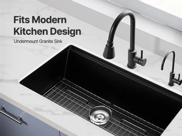 Unsere Granitspüle besticht durch ihr glattes, mattschwarzes Finish und dezenten Luxus. Sie ergänzt moderne Küchen und elegante Bars mit raffinierter Eleganz. Praktisch und pflegeleicht macht die schwarze Unterbauspüle die tägliche Küchenarbeit zum Vergnügen.
