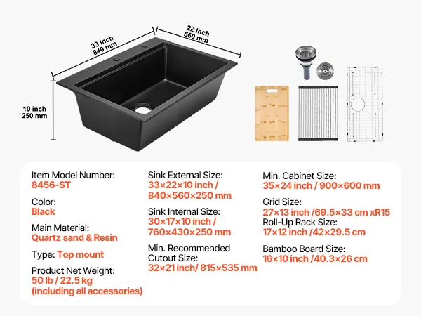 VEVOR Küchenspüle Granitspülen (84 x 56 x 25 cm) zur Aufputzmontage, Einbauspüle im Landhausstil mit Zubehörteilen, Haushaltsspülbecken für Wohnmobile, Vorbereitungsküchen, Bars, schwarz